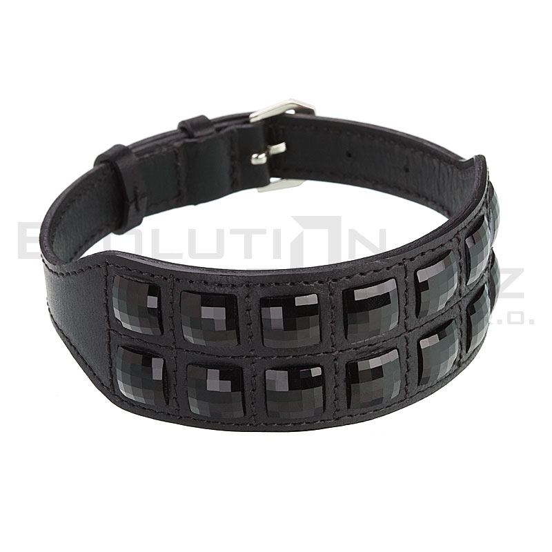 Unisex Lederarmband mit schwarzen Quadraten von Swarovski Elements.